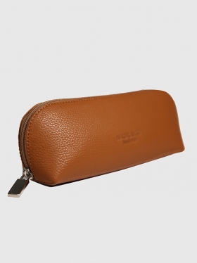 Package vanity case. Dimensions: 22 x 10 x 10 cm. OSLO Collection: premium cow leather products designed and handcrafted in Barcelona. Available in natural leather color, dark brown, black and red. This product can be personalised with a name or company logo.
