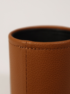Round pencil tin. Dimensions: 10 x 8 cm. OSLO Collection: premium cow leather products designed and handcrafted in Barcelona. Available in natural leather color, dark brown, black and red. This product can be personalised with a name or company logo.